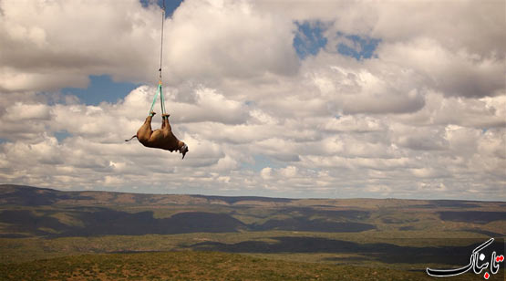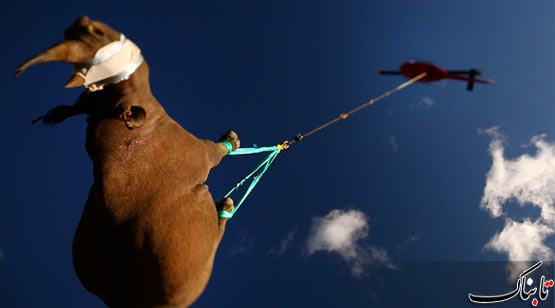 نجات یک کرگدن زخمی به کمک تیم امداد هوایی در آفریقای جنوبی