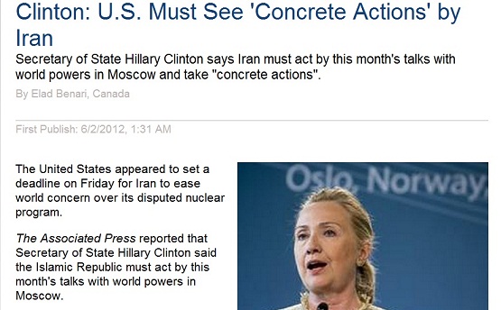 روزنامه «یدیعوت آحارانوت» اظهارات هیلاری کلینتون، وزیر خارجه آمریکا را منتشر کرده که در آن گفته است، آمریکا انتظار دارد در مذاکرات مسکو، شاهد انجام اقدامات عینی از سوی ایران باشد.