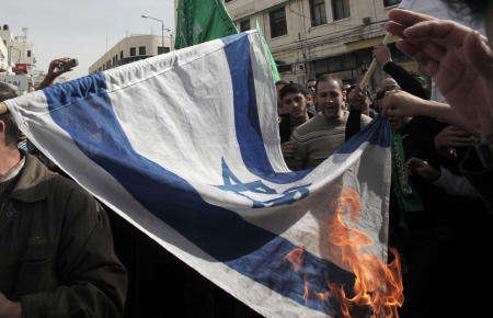 وعندما حاول عدد من المشاركين في هذه المظاهرة حرق العلم الإسرائيلي، سارع أعوان الأمن الذين انتشروا بكثافة في المنطقة، إلى منعهم من ذلك، حيث سحبوا منهم العلم الإسرائيلي وحالوا دون حرقه.