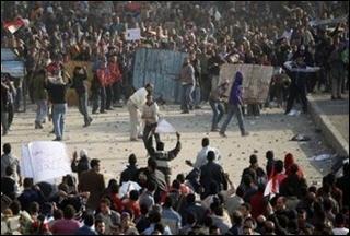 ويواجه الرئيس المصري حسني مبارك، الذي يتولى السلطة منذ 30 عاما، تظاهرات حاشدة تدعو الى تنحيه وتحولت الاربعاء الى مواجهات عنيفة بين محتجين ومؤيدين للرئيس.