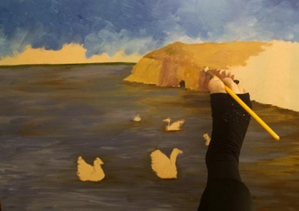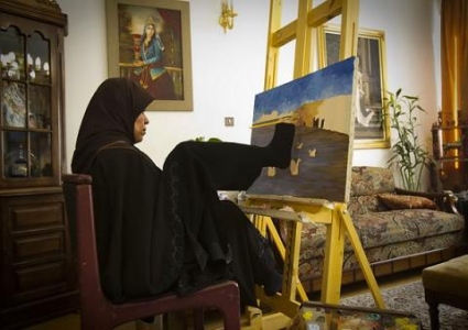 شبکة تابناک الأخبارية: لم تقف إعاقتها حاجزاً أمام الاستمرار بحياتها بشكل طبيعي، فبعزمها وإرادتها تمكنت الإيرانية "زهرة أيتزاد سلطانية”، التي تعيش من دون يدين، من تحقيق حلمها وممارسة هوايتها المفضلة، حيث نالت العديد من الجوائز التقديرية عن لوحات رسمتها بقدميها حيث أنها ولدت بدون يدين.