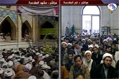 وتجمع طلبة الحوزة العلمية في مدينة قم المقدسة بباحتها يتقدمهم كبار العلماء، مطالبين السلطات البحرينية بوقف عمليات القتل والملاحقة ضد المتظاهرين المسلمين.