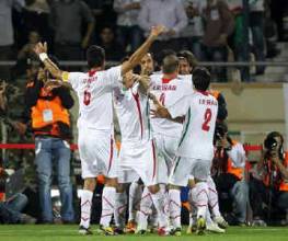 صورة فرح لاعبي إیران في مباراة البحرين