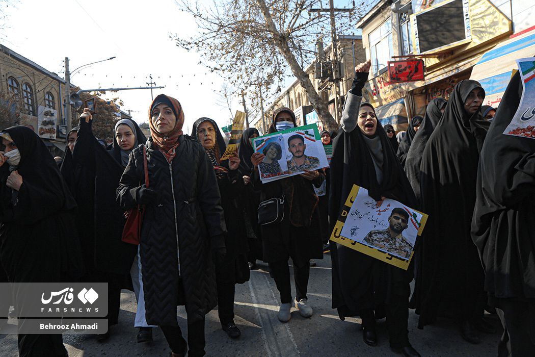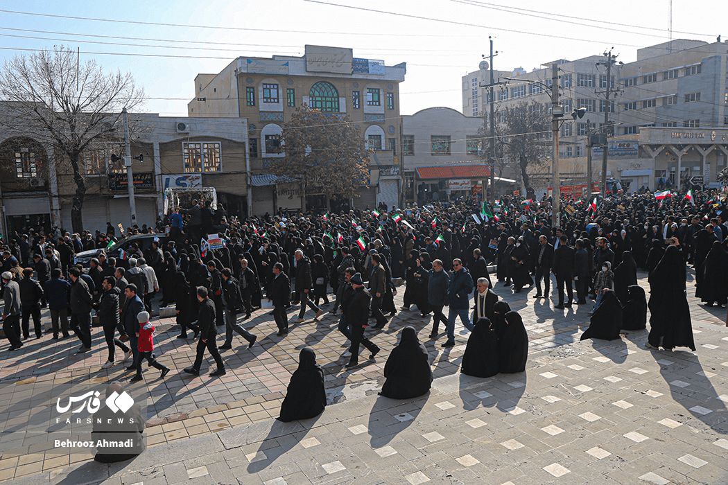 عکس: محکومیت جنایات اغتشاشگران در کرمانشاه همزمان با تشییع شهدا