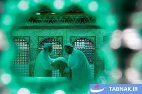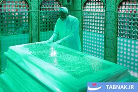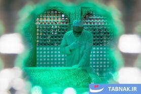 عکس: غبارروبی ضریح مطهر امام رضا علیه‌السلام با حضور خانواده شهدا