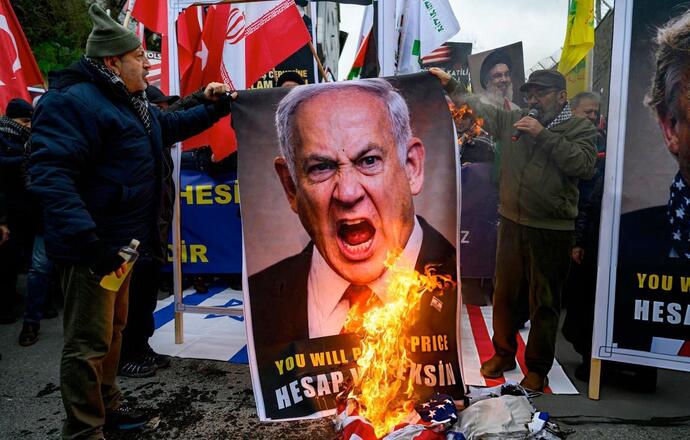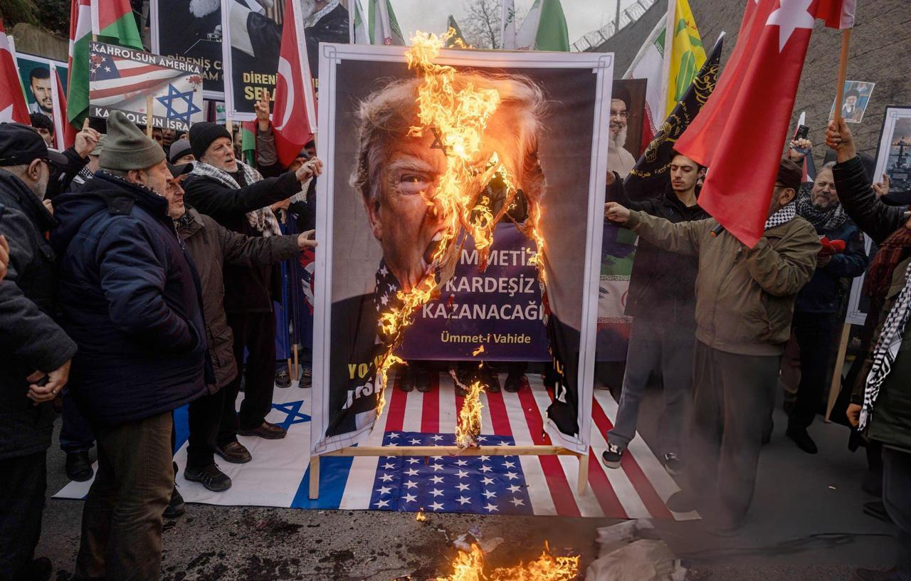 عکس | آتش زدن عکس ترامپ و نتانیاهو در استانبول