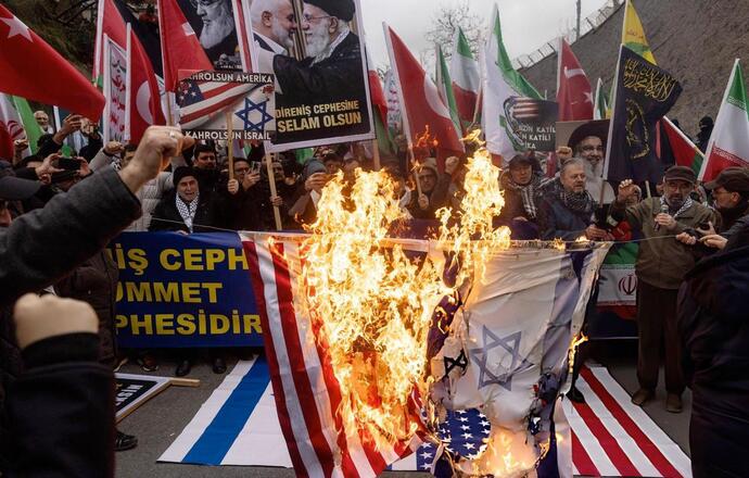 ترکیهایها با تجمع مقابل کنسولگری آمریکا در استانبول از ایران حمایت و نسبت به حمله نظامی به ایران اعتراض کردند. در طی این اعتراض، تصاویر ترامپ و نتانیاهو در مقابل کنسولگری آمریکا در استانبول به آتش کشیده شد.