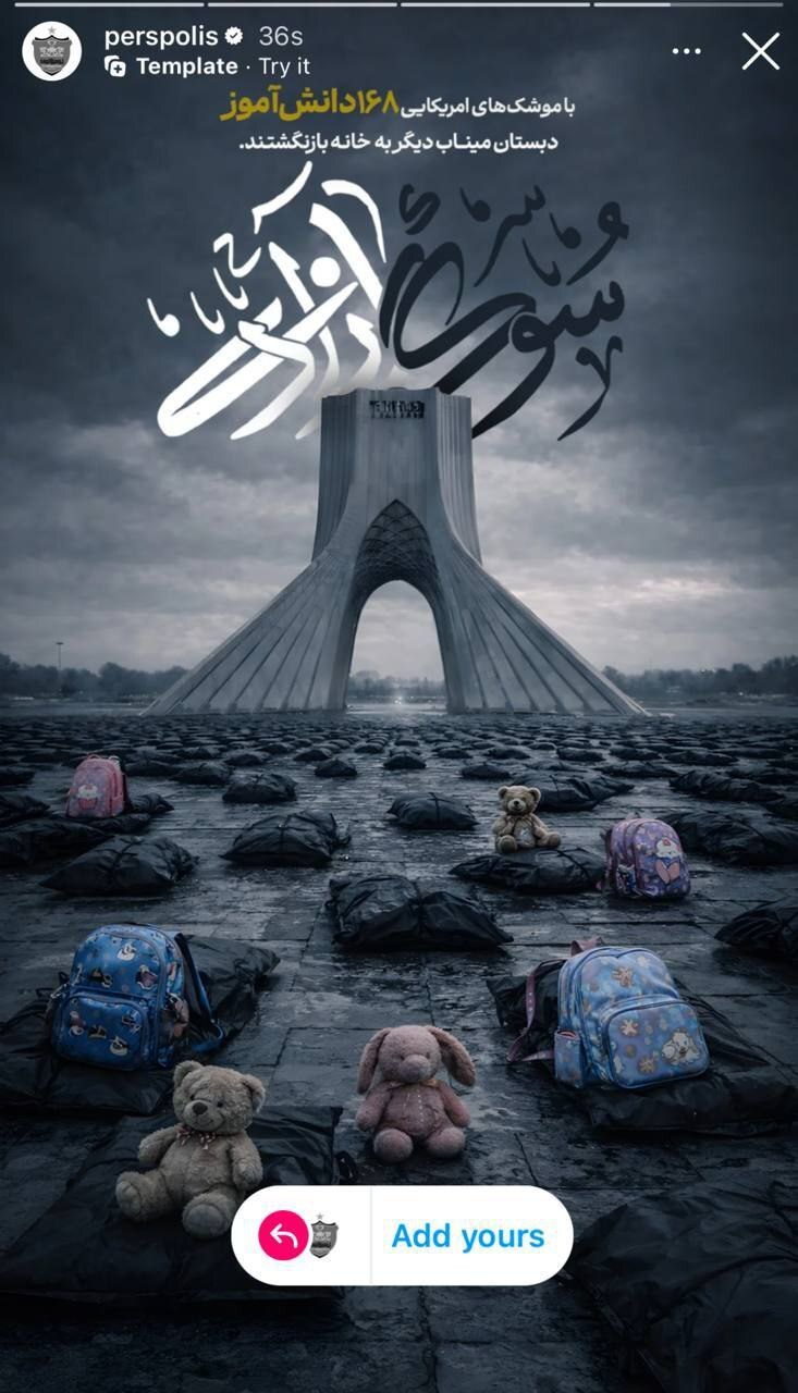 عکس: طرح باشگاه پرسپولیس از شهادت دانشآموزان مینابی