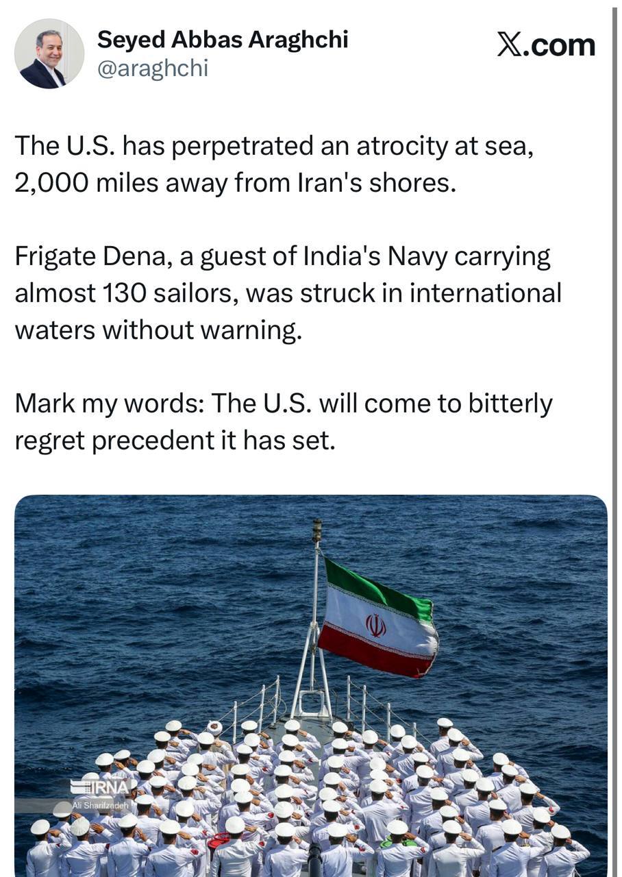 واکنش عراقچی به غرق شدن ناوچه دنا