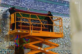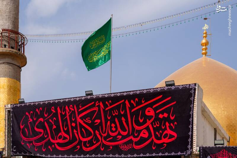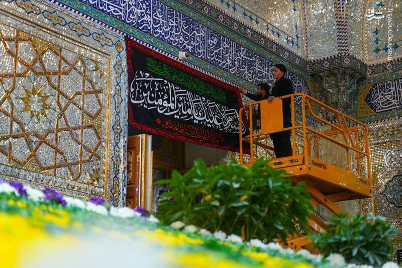 عکس: نصب کتیبههای شهادت امیرالمومنین در حرمین سامرا