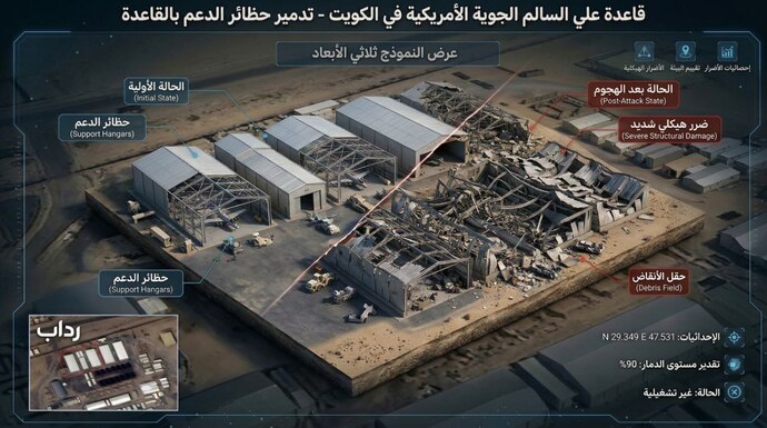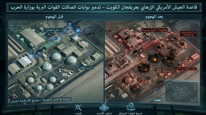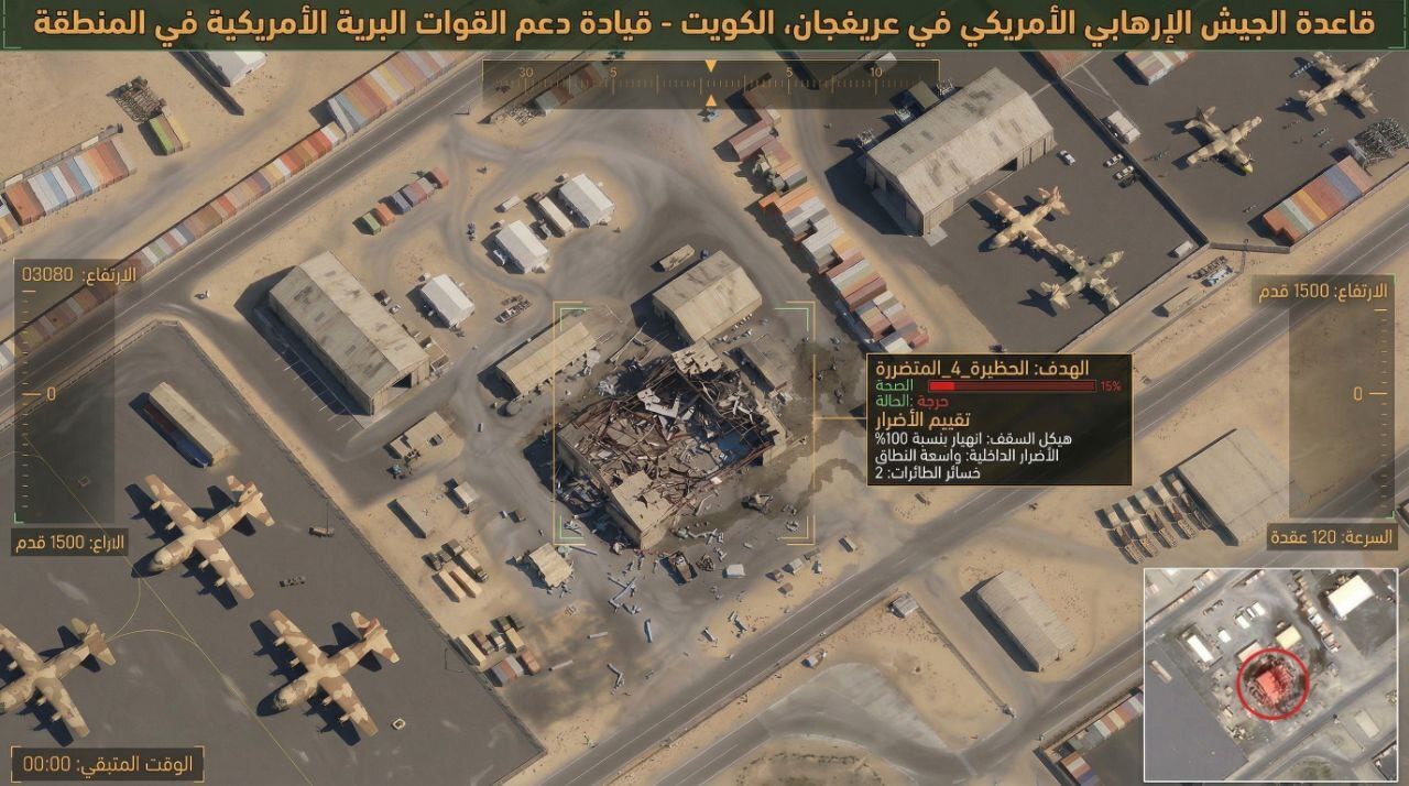 خسارات وارده به پایگاههای عریفجان کویت بر اثر حملات موشکی ایران