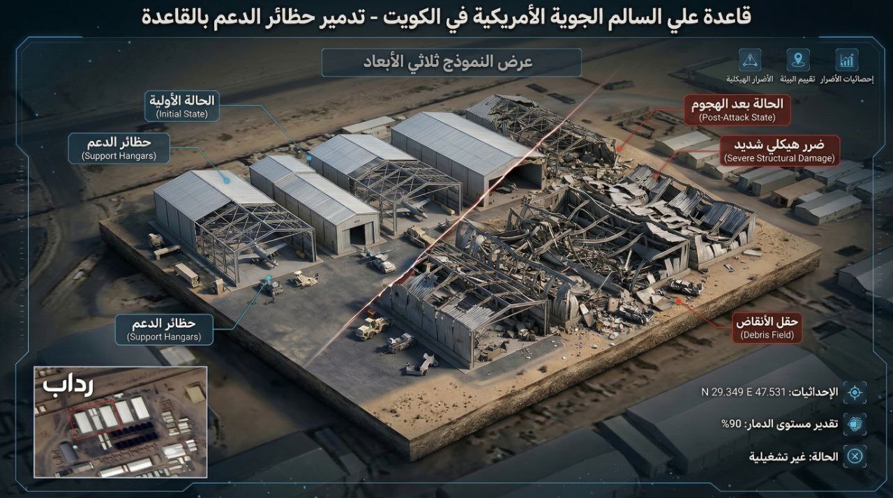 عکس | خسارات وارده به پایگاههای عریفجان کویت