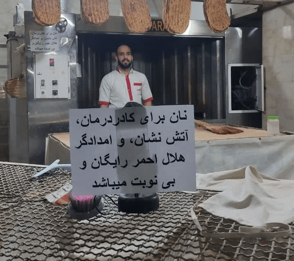 نانوای صفادشتی از شهرستان ملارد برای نیروهای کادر درمان، آتشنشان و امدادگر هلال احمر نان رایگان و بدون نوبت پخت میکند.