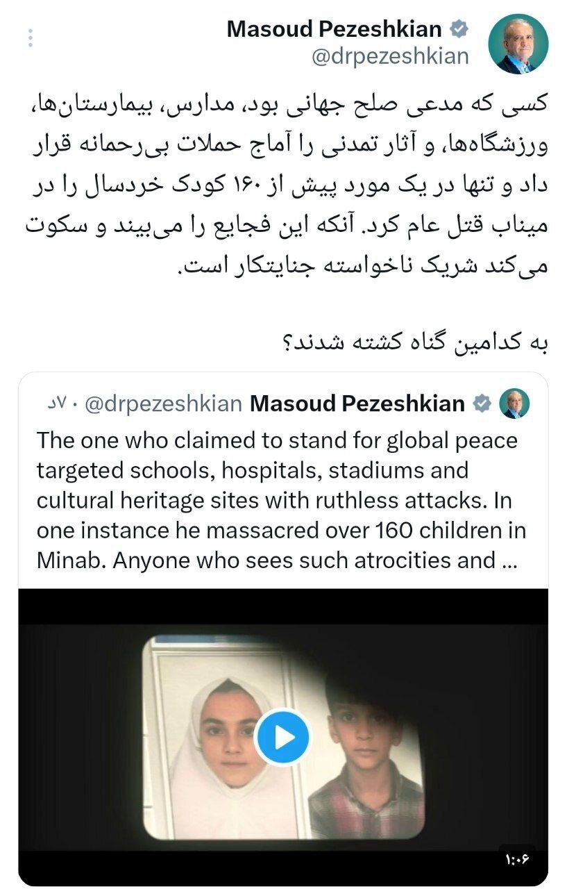 کنایههای پزشکیان به مدعی صلح جهانی