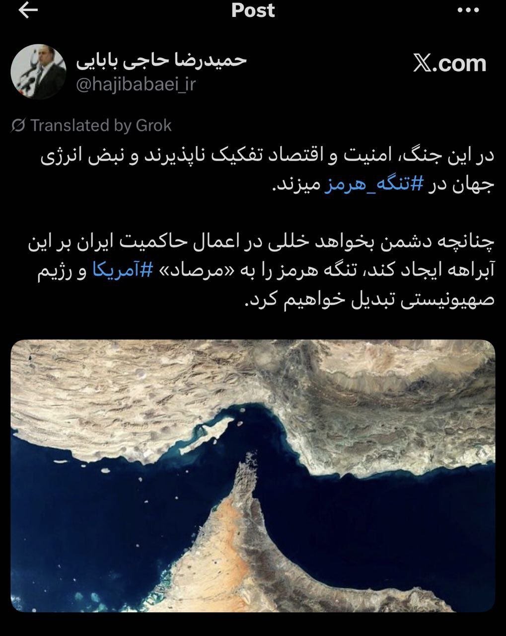 به گزارش تابناک، حمیدرضا حاجیبابایی نماینده مجلس در شبکه اجتماعی ایکس نوشت: تنگه هرمز را به «مرصاد» آمریکا و رژیم صهیونیستی تبدیل خواهیم کرد.
