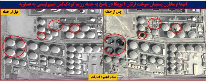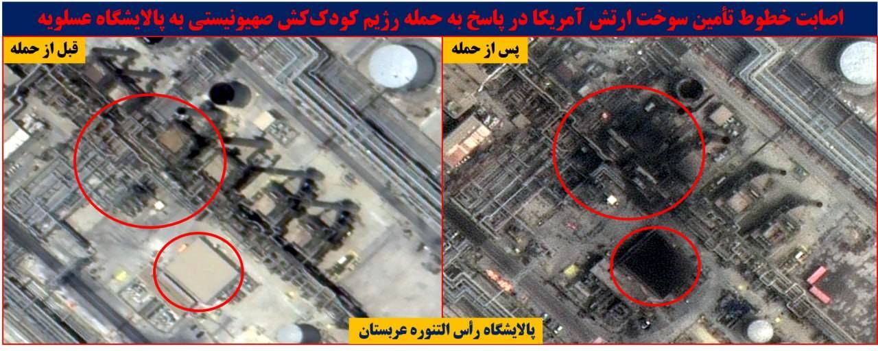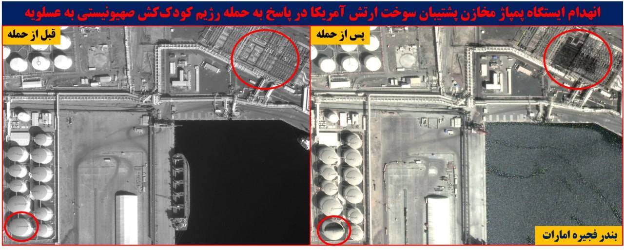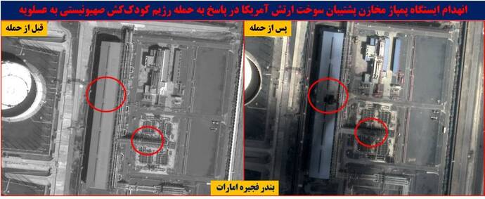 بر اساس آخرین بهروزرسانی تصاویر ماهوارهای از پایگاههای آمریکا در منطقه، انهدام مخازن سوخت، ایستگاههای پمپاژ، خطوط تامین سوخت و سایر زیرساختهای ارتش آمریکا، کاملا مشهود است.