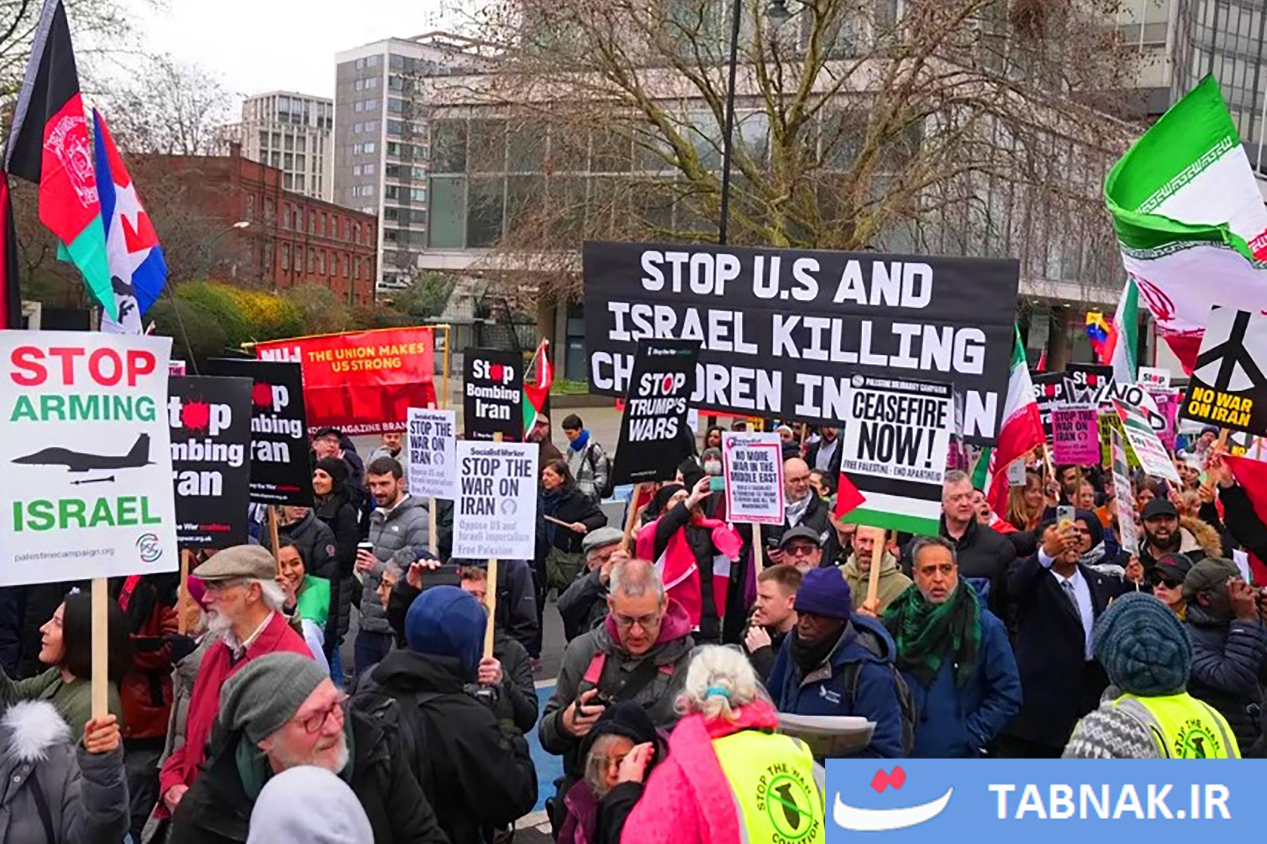 شهروندان انگلیسی در لندن در رد تجاوز آمریکایی ـ اسرائیلی علیه ایران تظاهرات گستردهای برگزار کردند.