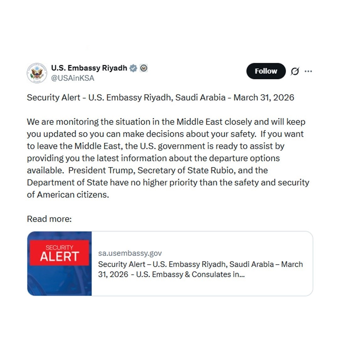سفارت آمریکا در عربستان سعودی در اطلاعیهای اعلام کرد: «ما درحال پیگیری گزارشهایی مبنی بر وجود تهدید علیه مکانهای تجمع شهروندان آمریکایی هستیم.