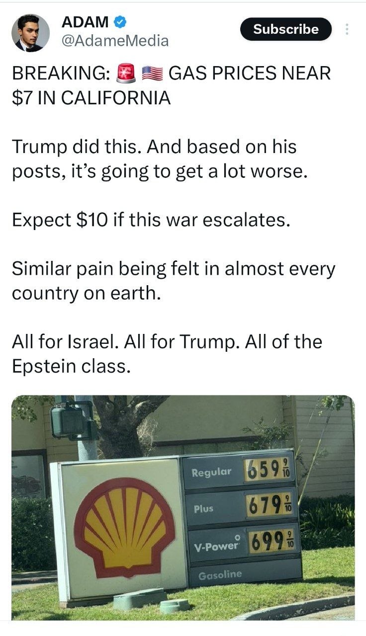 اگر این جنگ تشدید شود، انتظار ۱۰ دلار را داشته باشید. درد مشابهی تقریباً در هر کشور روی زمین احساس می‌شود.
