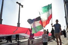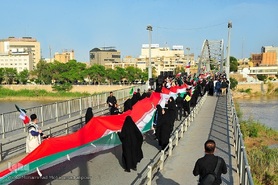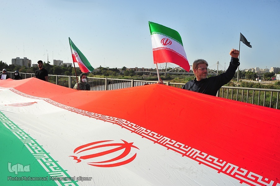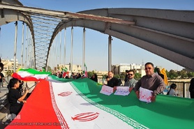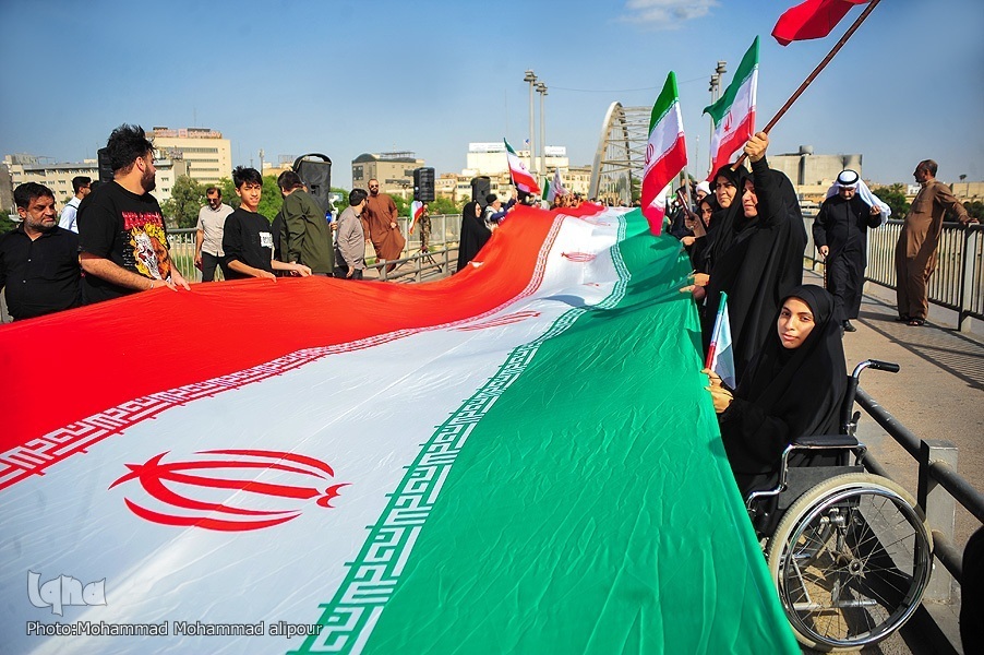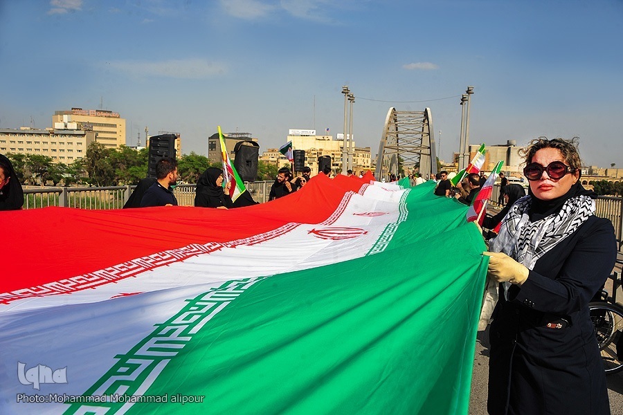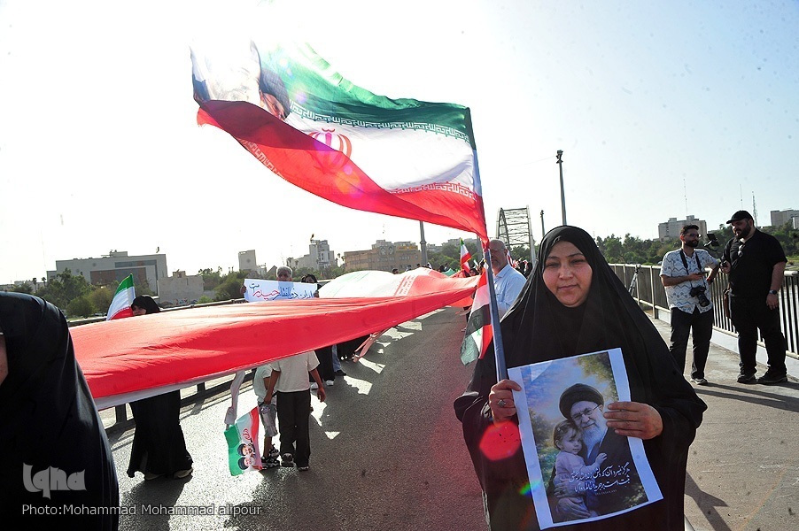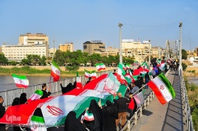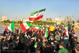 عکس: زنجیره انسانی در محکومیت تهدیدات حمله به پلها و نیروگاهها در اهواز