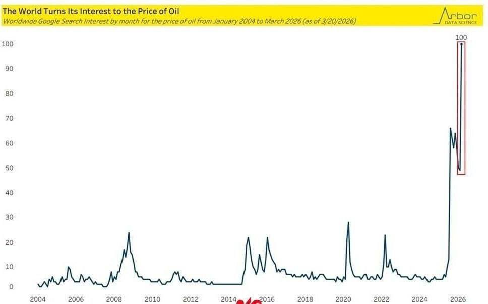 به گزارش تابناک به نقل از مهر، میزان جستجوی گوگل برای «قیمت نفت» به بالاترین سطح ثبت شده از سال ۲۰۰۴ رسیده است.