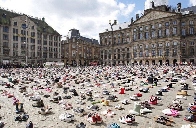 به گزارش تابناک به نقل از فارس؛ دیروز در میدان دام در آمستردامِ هلند، کفشهایی برای بزرگداشت بیش از ۲۰,۰۰۰ کودکی که در غزه توسط نیروهای اشغالگر کشته شدند، قرار داده شد.