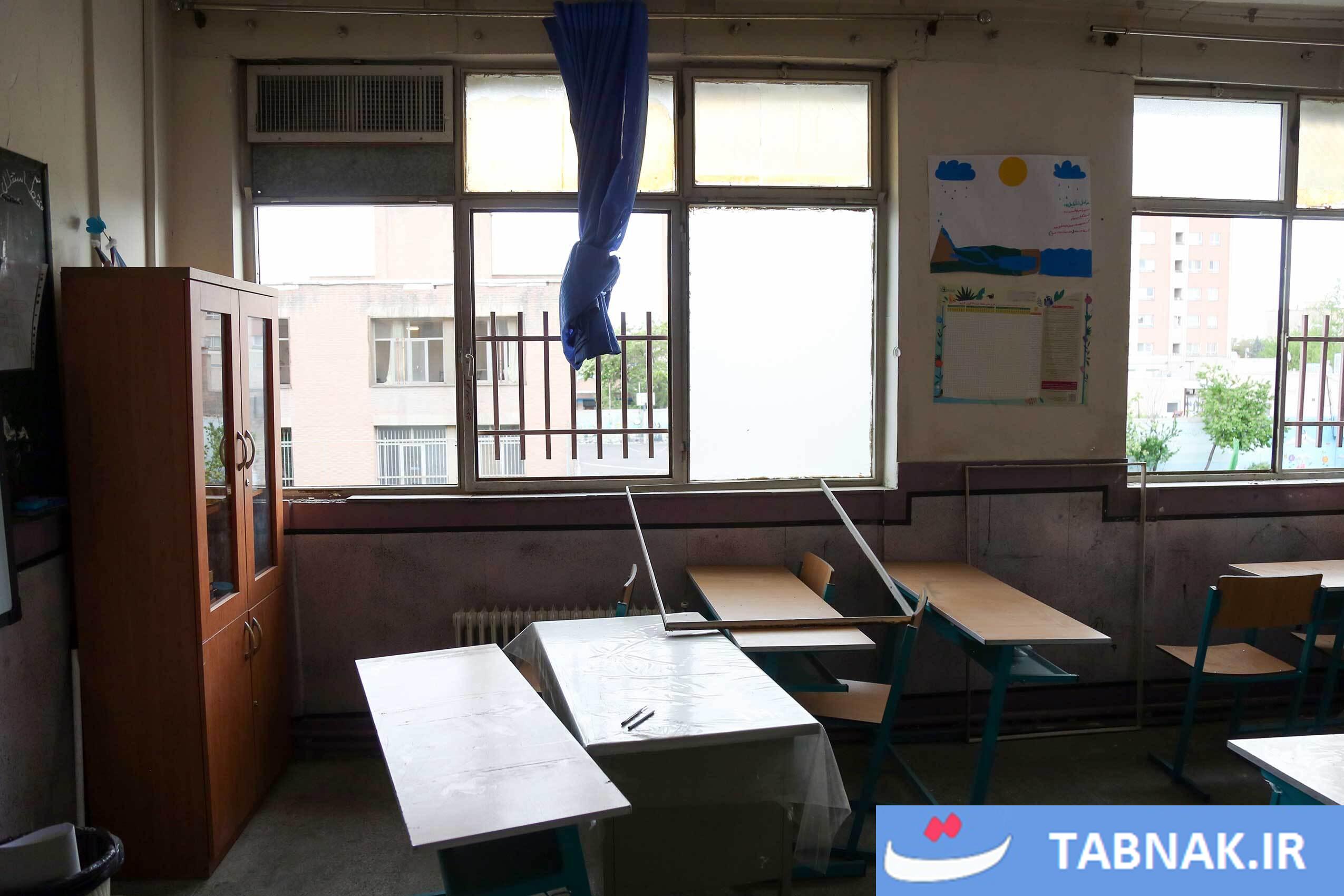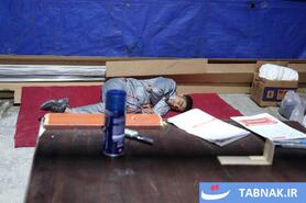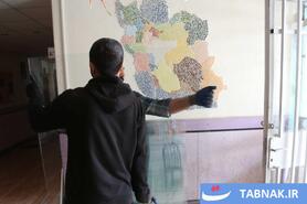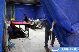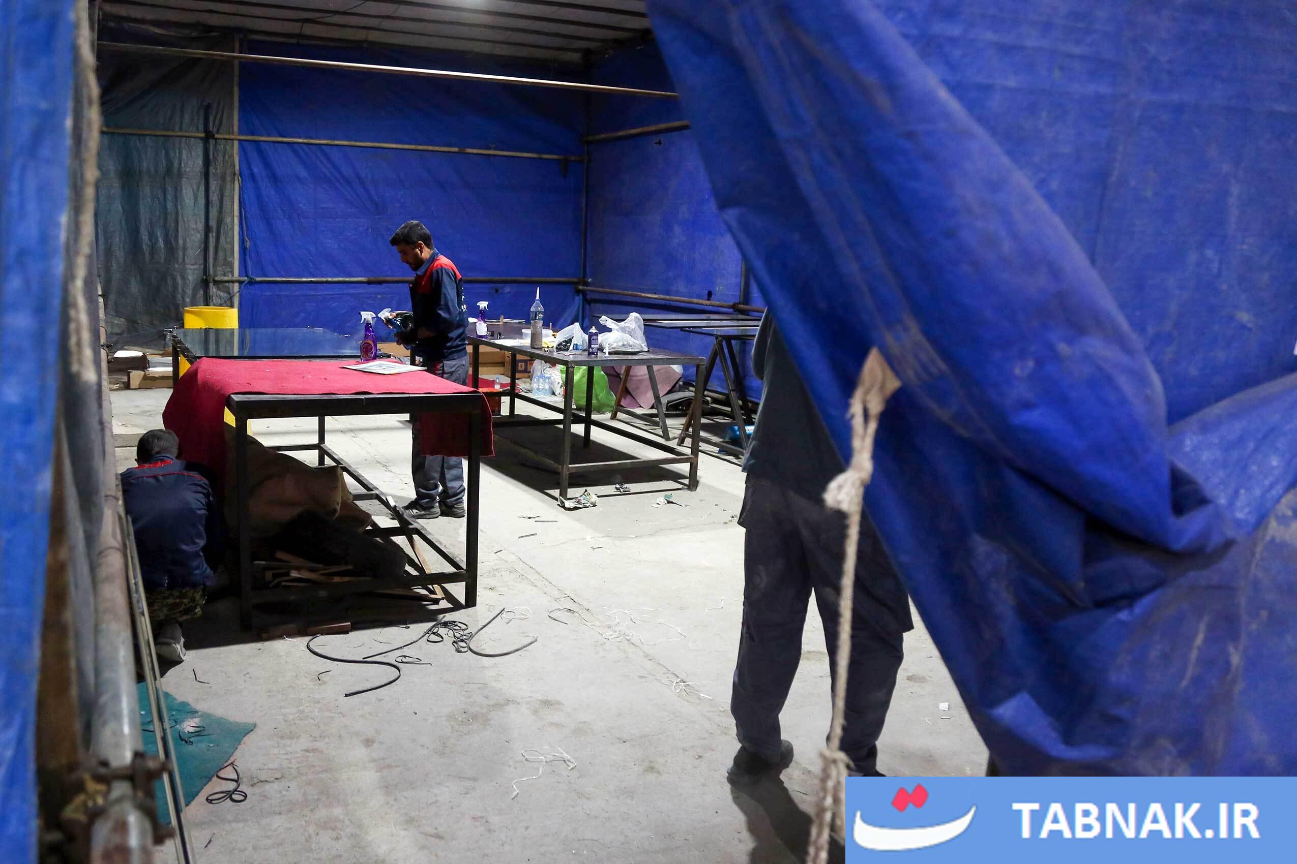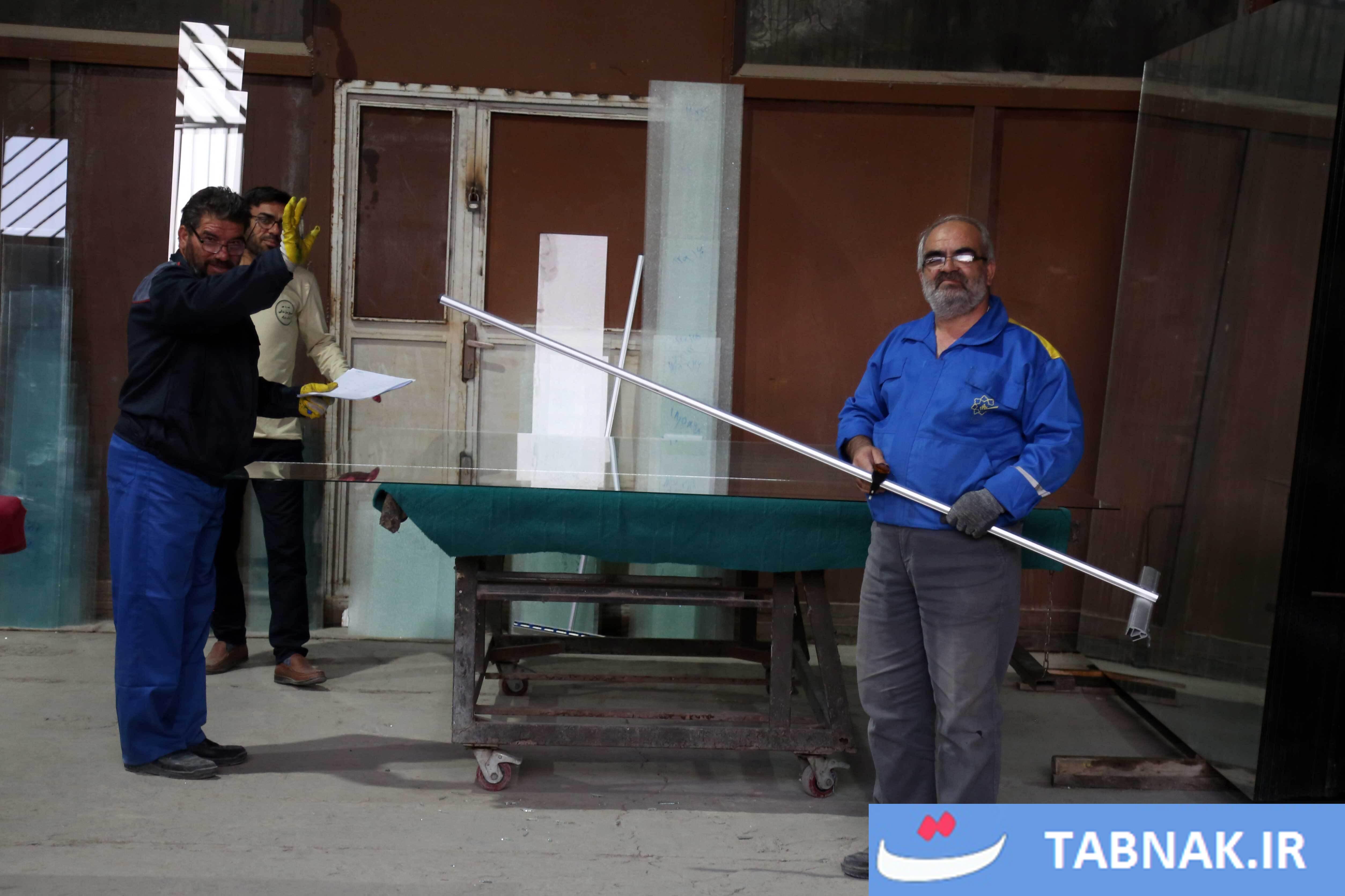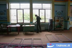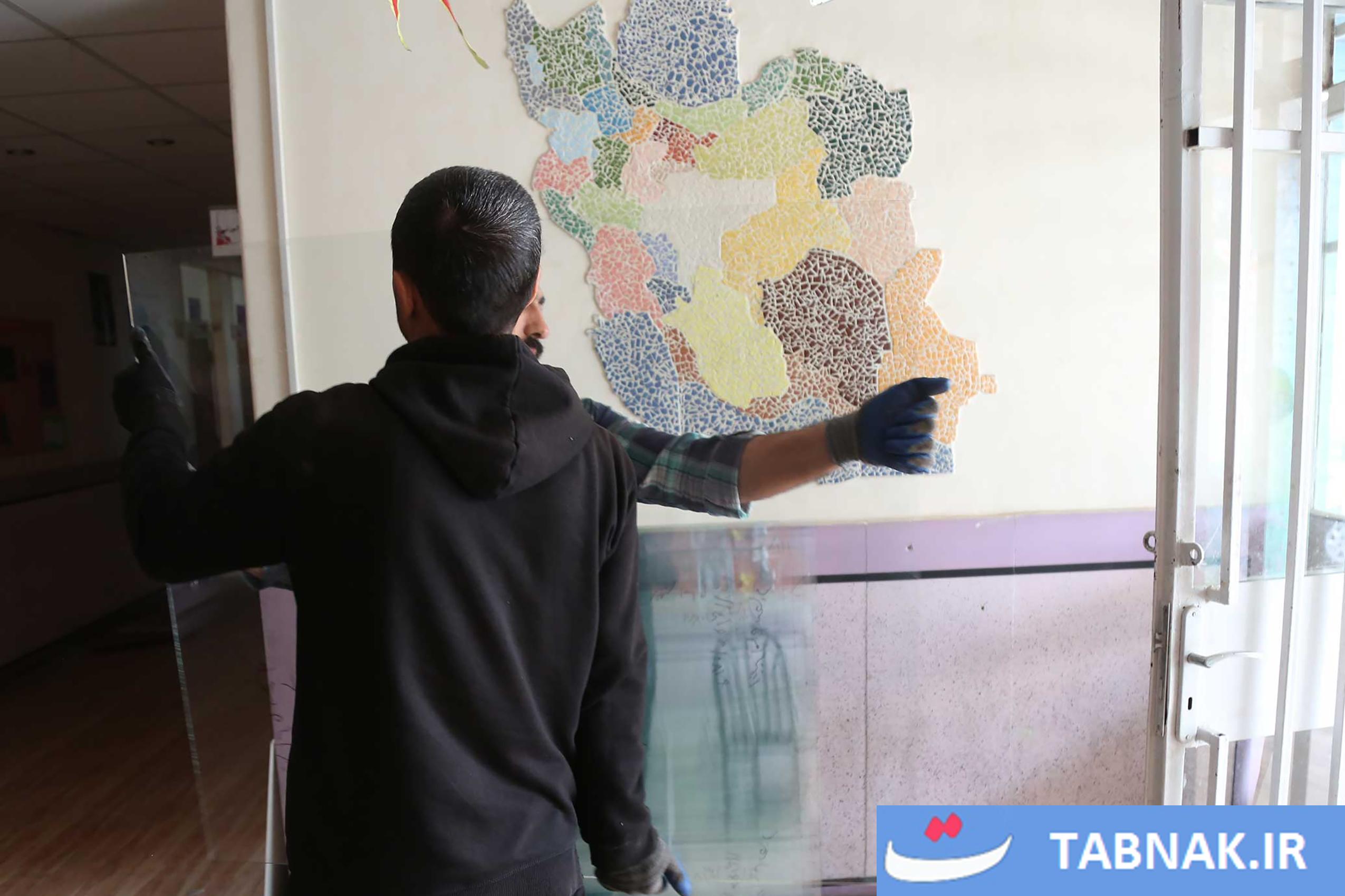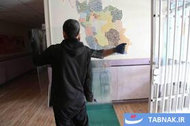 جهادگرانی که در مناطق آسیبدیده از جنگ، شیشههای شکسته مدارس و منازل مسکونی را تعمیر میکنند.
