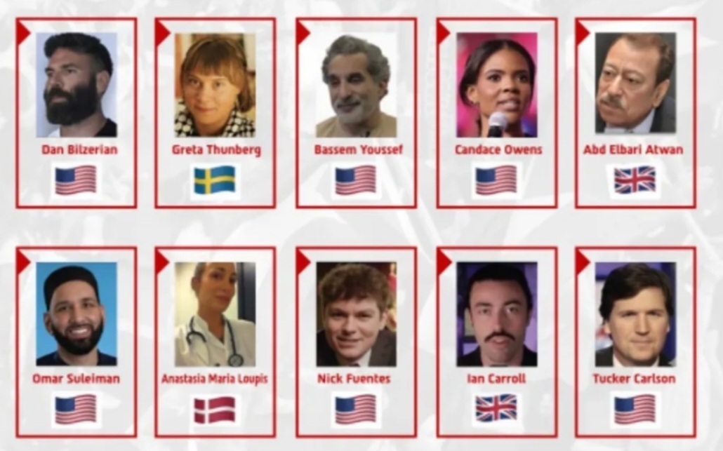 همه افراد به دلیل فعالیت‌هایشان در سال ۲۰۲۵ (هم‌زمان با ادامه تنش‌ها در غزه و منطقه) انتخاب شده‌اند. این نکته اهمیت عملیات هفتم اکتبر را بیش از پیش نشان می‌دهد . به نظر می‌رسد بیم اصلی اسرائیلی ها نه تنها افراد خاص، بلکه پدیده‌ای گسترده‌تر یعنی «نفوذ رسانه‌ای در جنگ روایت‌ها» باشد و ائتلافی از رسانه های ازاد و فعالان محبوب شبکه های اجتماعی.
