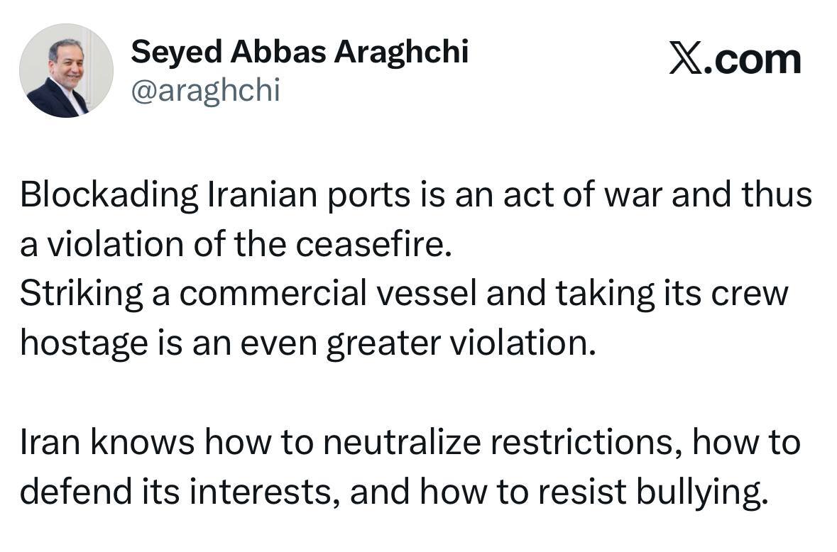 واکنش عراقچی به حمله آمریکا به کشتی تجاری