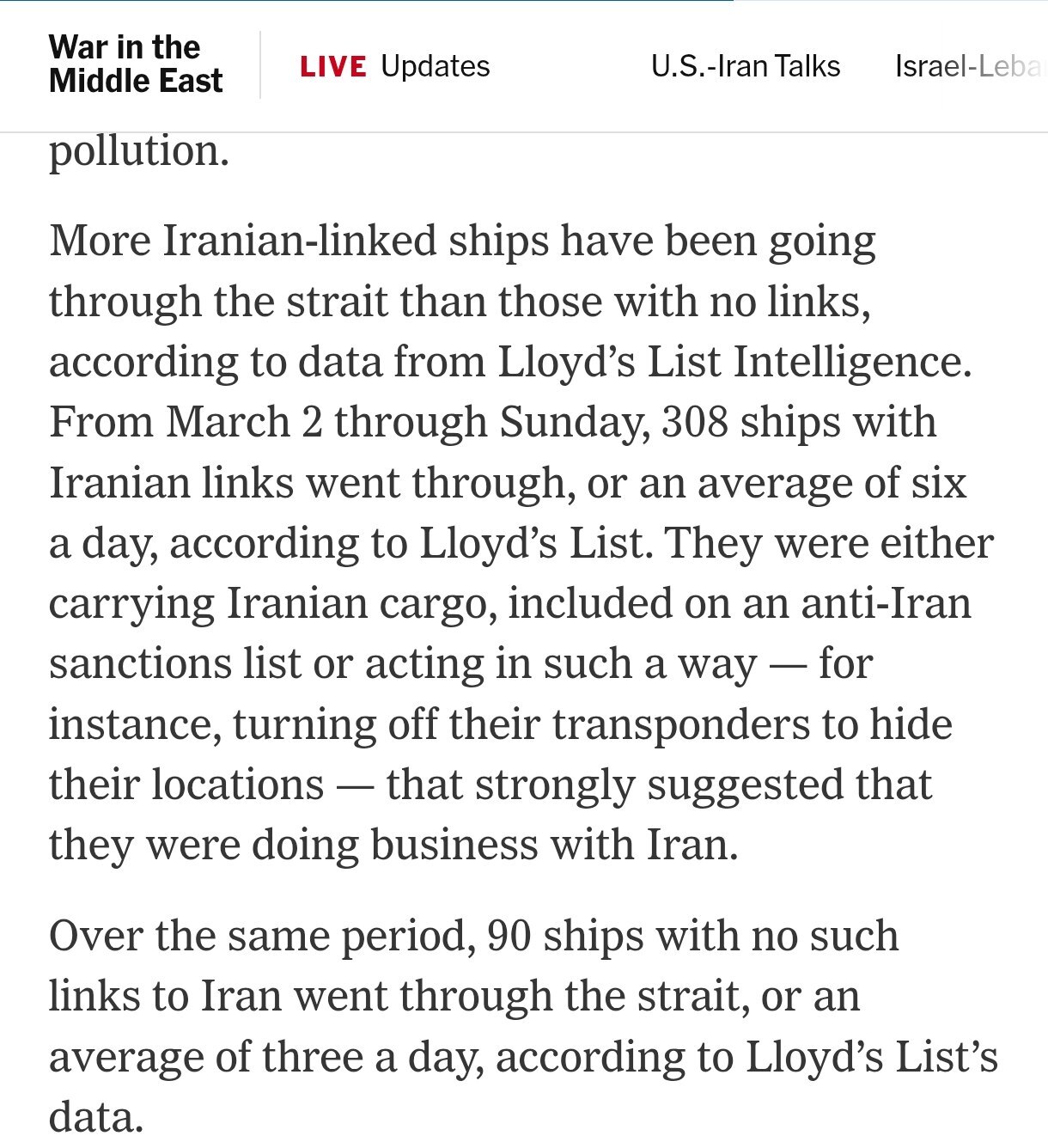 نیویورکتایمز: از زمان آغاز جنگ آمریکا با ایران، ۳۰۸ کشتیِ مرتبط با ایران از تنگهٔ هرمز عبور کردهاند.
