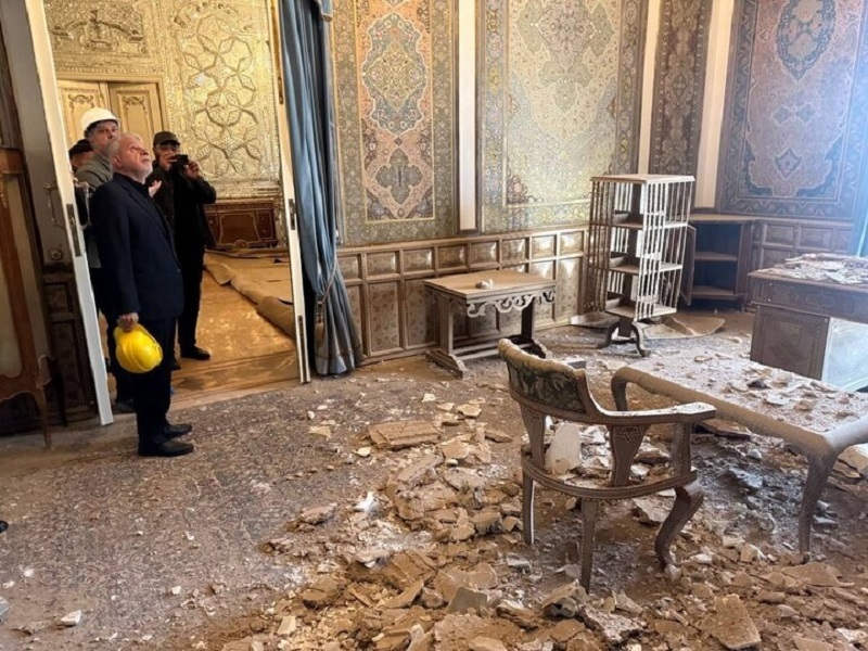 نمایی از کاخ سبز در مجموعه سعدآباد پس از حمله آمریکا و اسرائیل