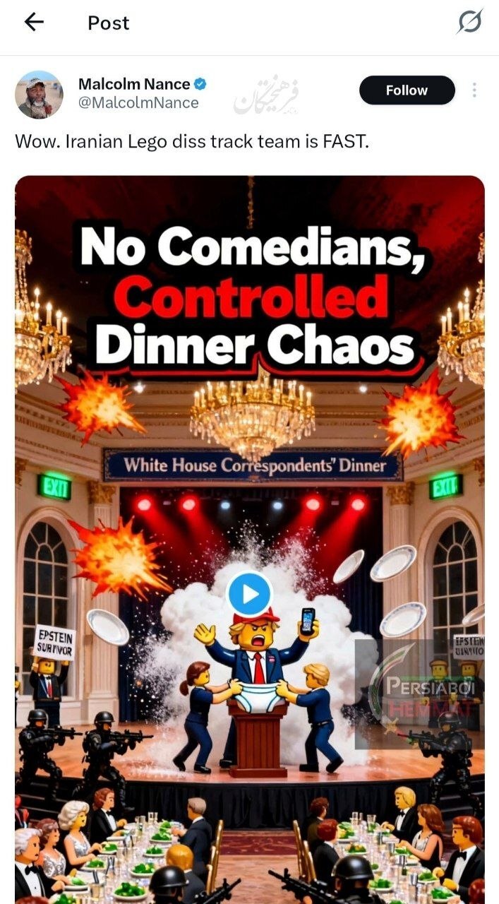 مالکوم نانس نوشت: وای. تیم ساخت ویدیوهایی لگویی علیه ترامپ در ایران خیلی سریع کار میکند.