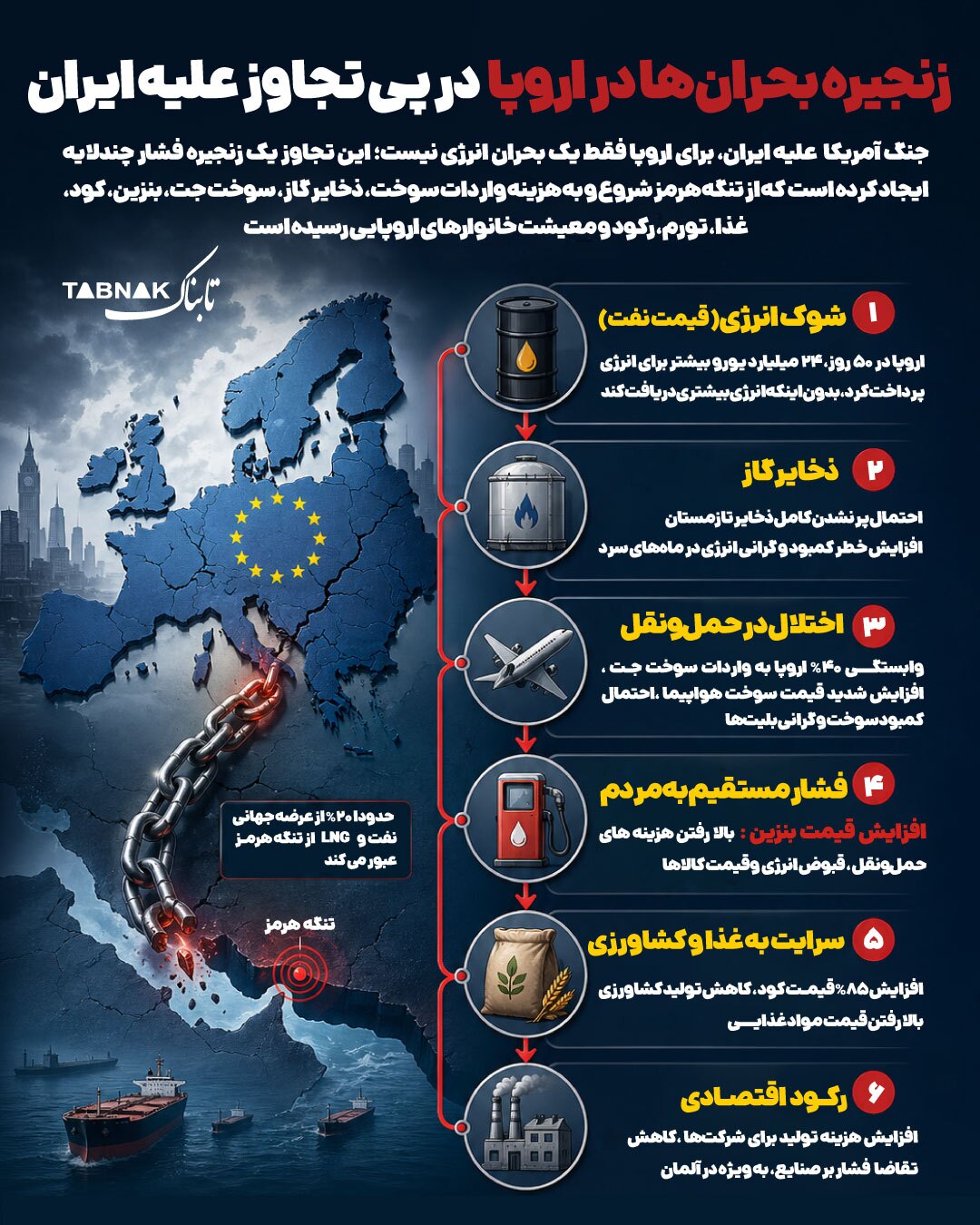 اینفوتابناک | زنجیره بحرانها در اروپا در پی تجاوز علیه ایران