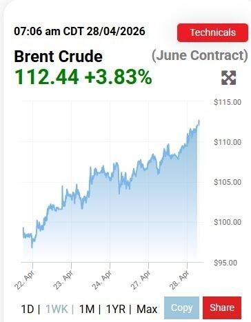 قیمت نفت برنت دوباره به مرز ۱۱۲ دلار رسید