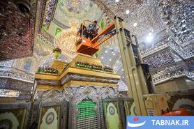 در آستانه ولادت پر سر سعادت علی ابن موسی الرضا علیهالسلام ضریح نورانی سیدالشهدا توسط خادمان عتبه حسینی گلآرایی شد.