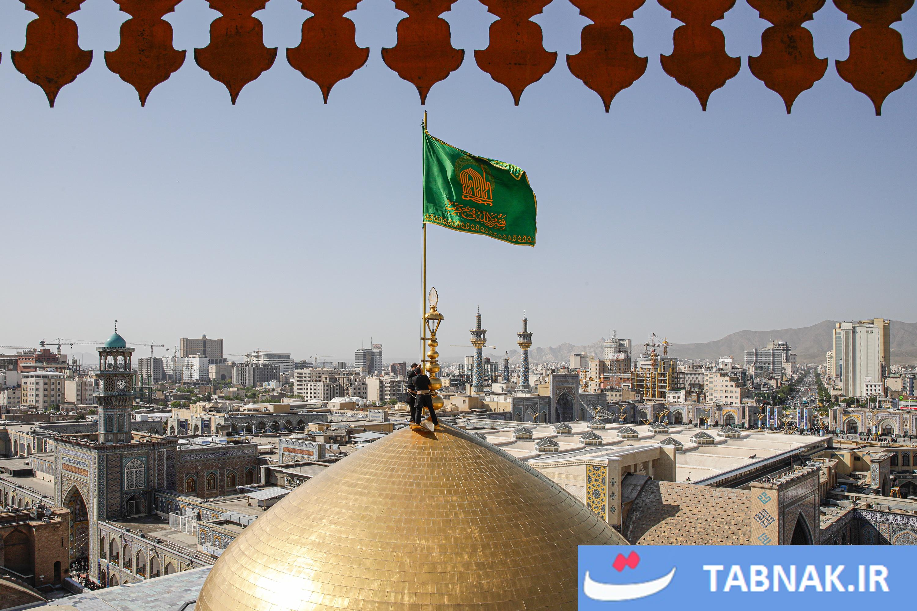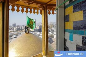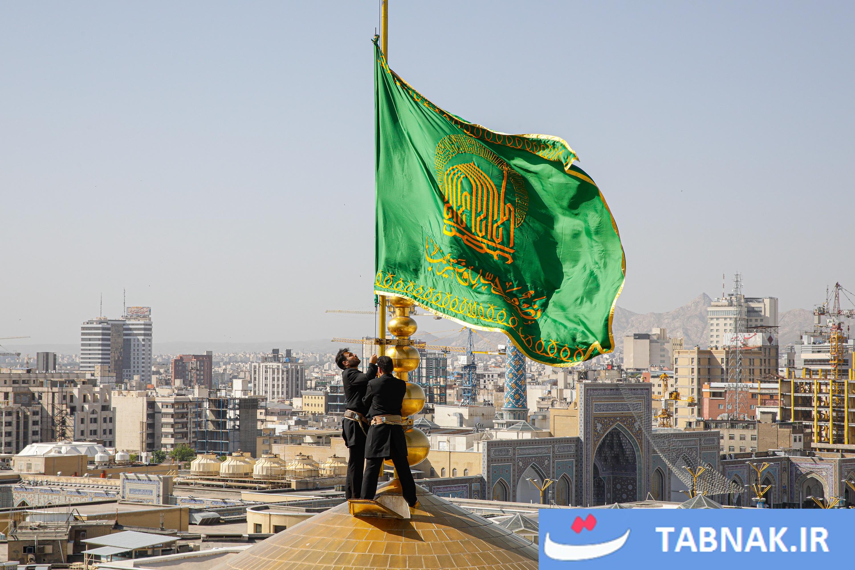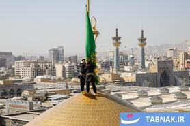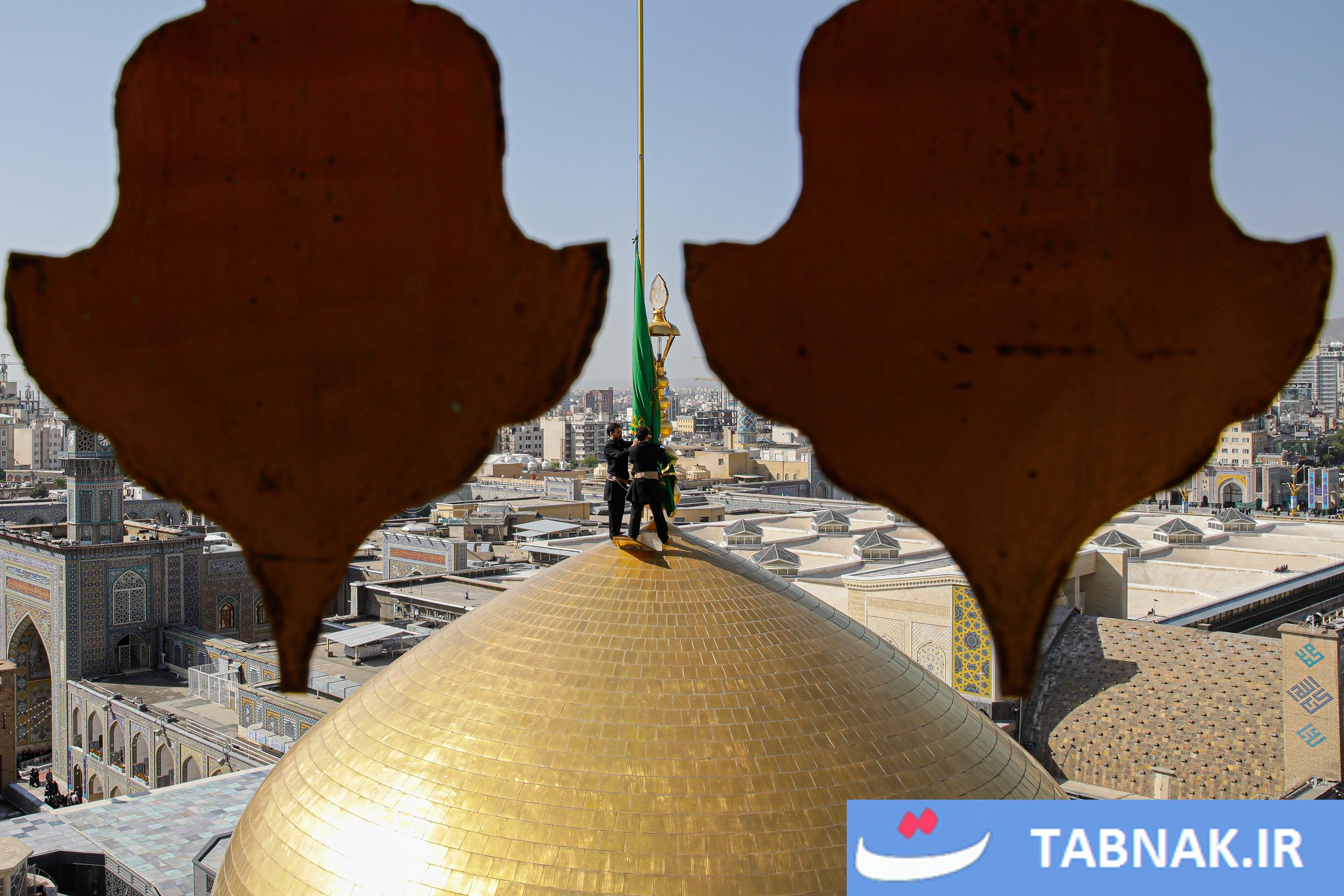 عکس: آیین تعویض پرچم گنبد منور رضوی در روز میلاد امام رضا علیه‌السلام