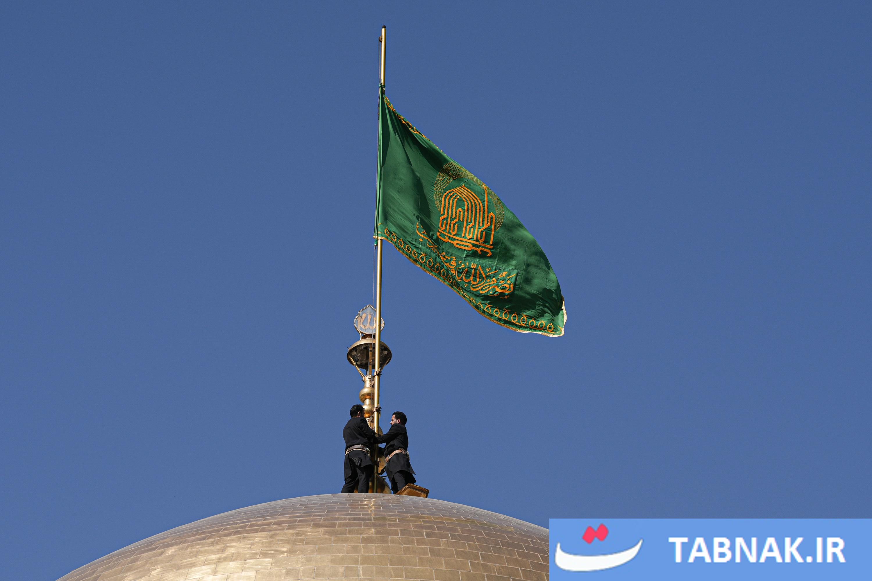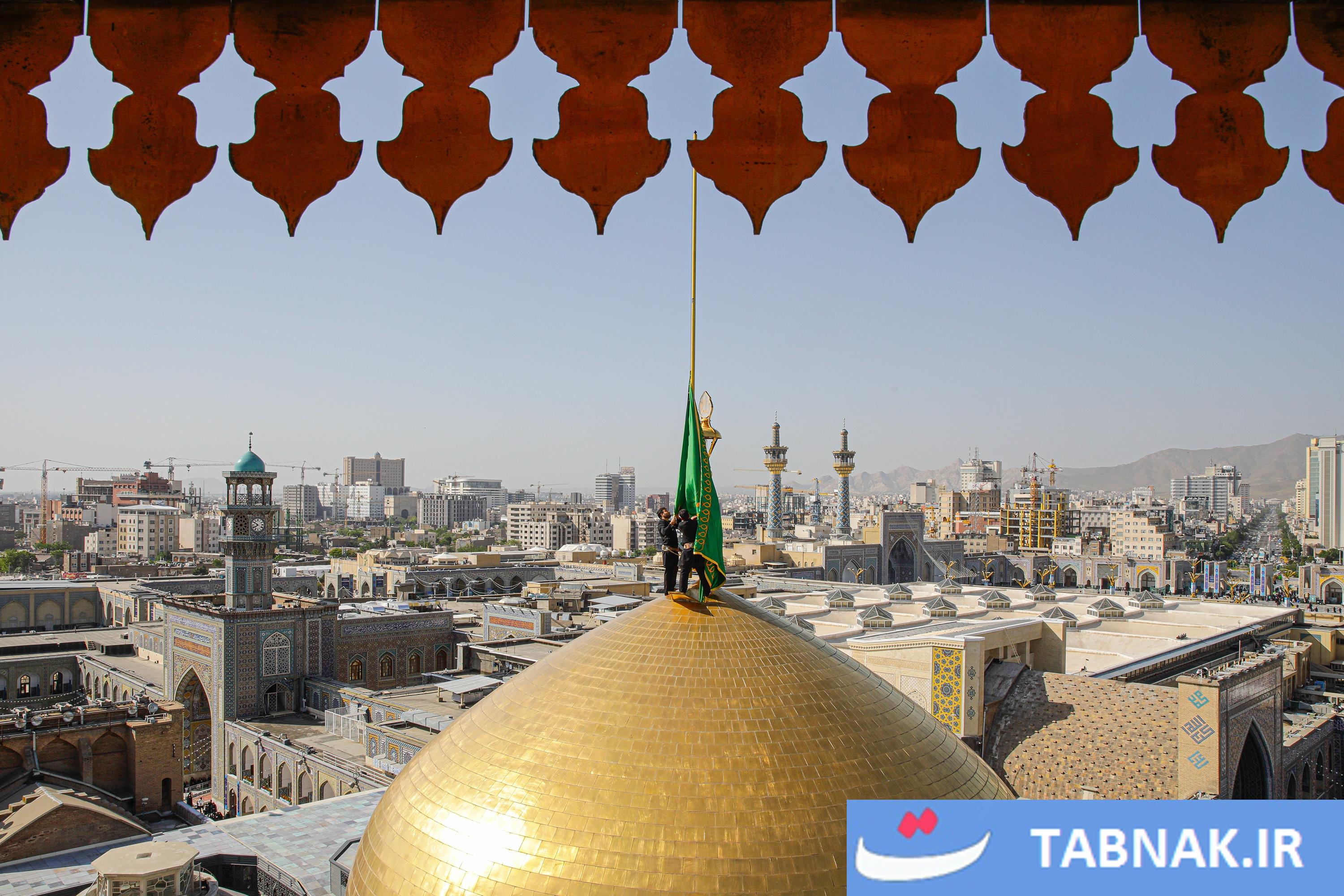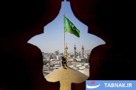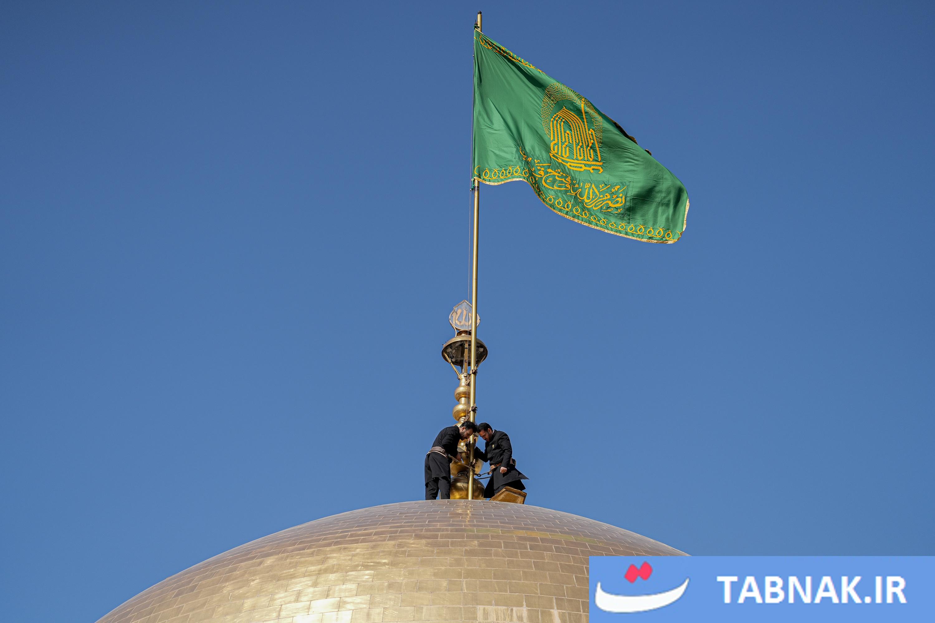 عکس: آیین تعویض پرچم گنبد منور رضوی در روز میلاد امام رضا علیه‌السلام