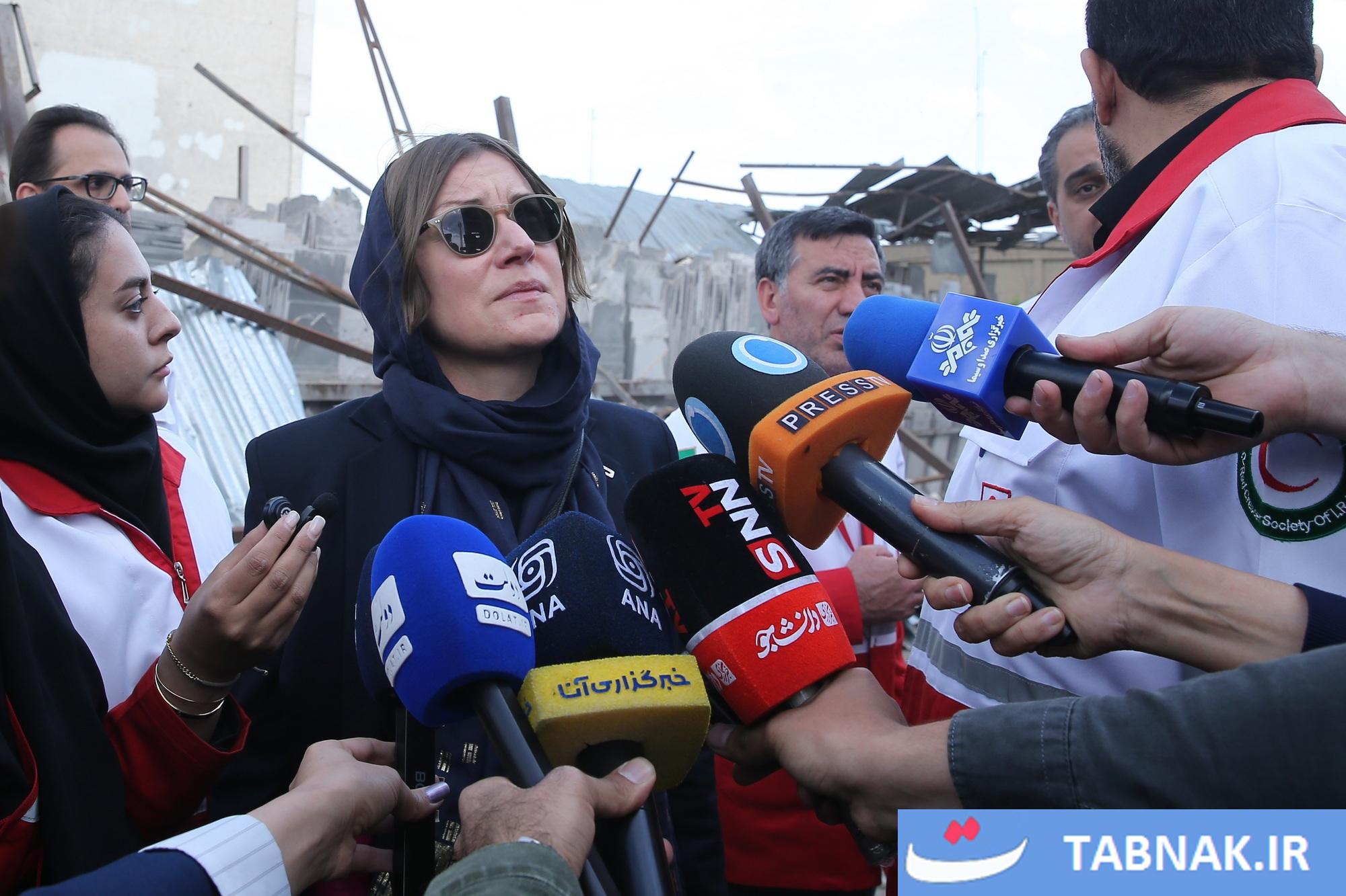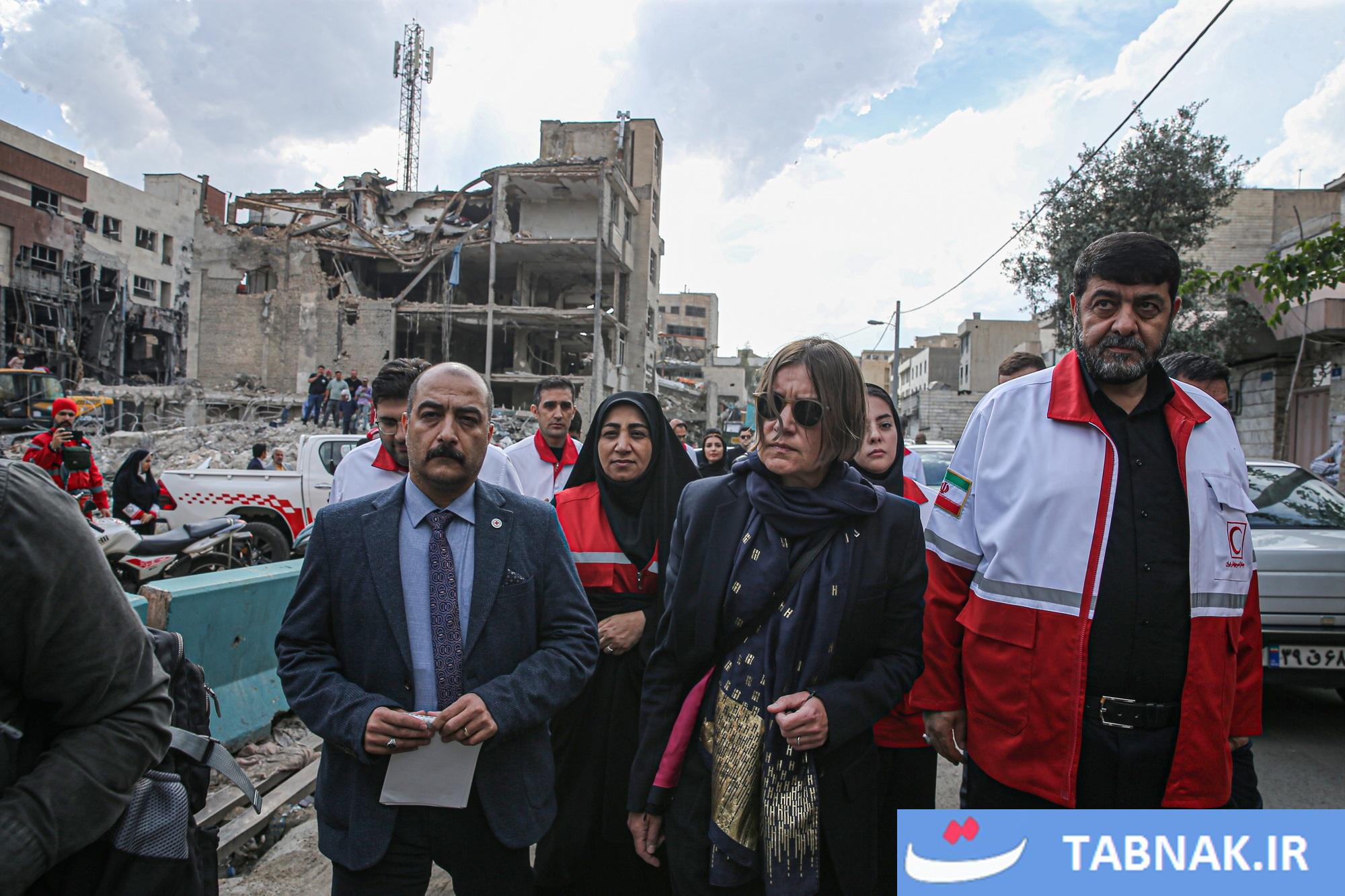 میریانا اسپولیاریک ایگر رئیس کمیته بین المللی صلیب سرخ به منظور بررسی جنایات آمریکا و رژیم صهیونیستی در جنگ تحمیلی سوم از محل اصابت بمب ها بازدید کرد. عکس : عباس تاجیک یار