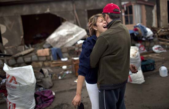 یکی از شهروندان شیلی در پی بروز زلزله که موجب تخریب کل شهر شد، باعث بروز غم و اندوه شد.