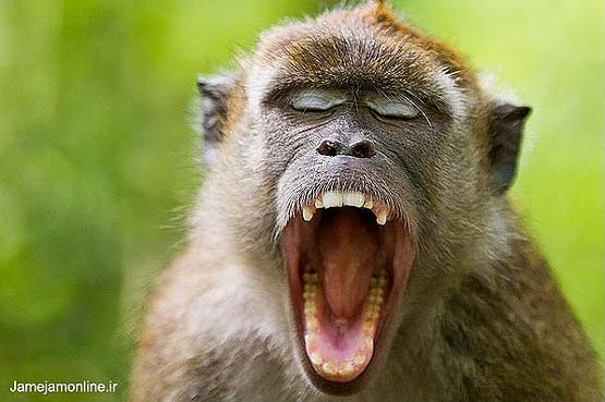 خميازه يك ميمون ماكاك خرچنگ خوار در شمال شرق جزيره كاليمانتان در اندونزي.