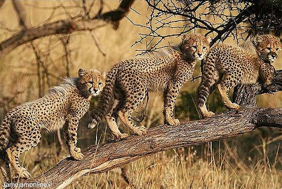 سه توله يوزپلنگ يا چيتا در پارك حفاظت وحش پهيندا در كووا زولو ناتال آفريقاي جنوبي.