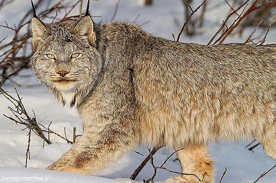 يك سياه گوش يا گربه وحشي كانادايي در يوكون كانادا.