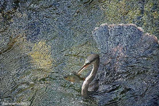لحظه شكار ماهي توسط يك مرغ ماهيخوار در پارك ملي اورگليدز.