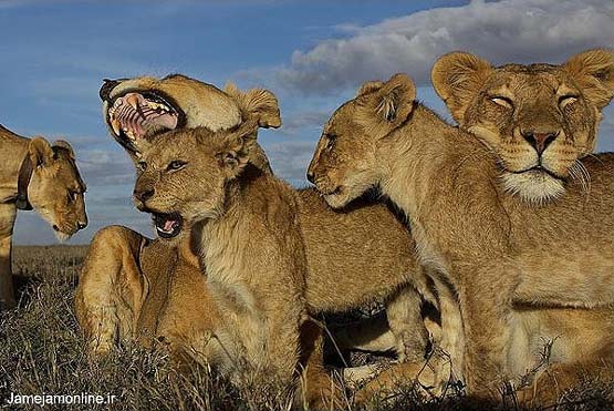 توله و ماده شيرها در پارك وحش سرنگتي در تانزانيا.
