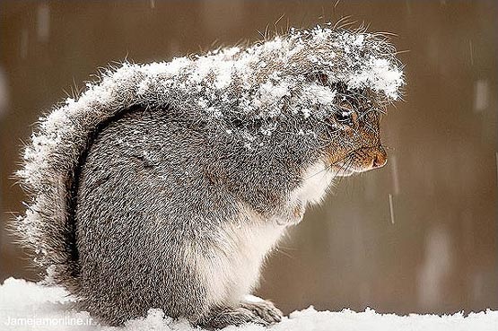 تصوير ديدني يك سنجاب در زير برف در نيوجرسي.