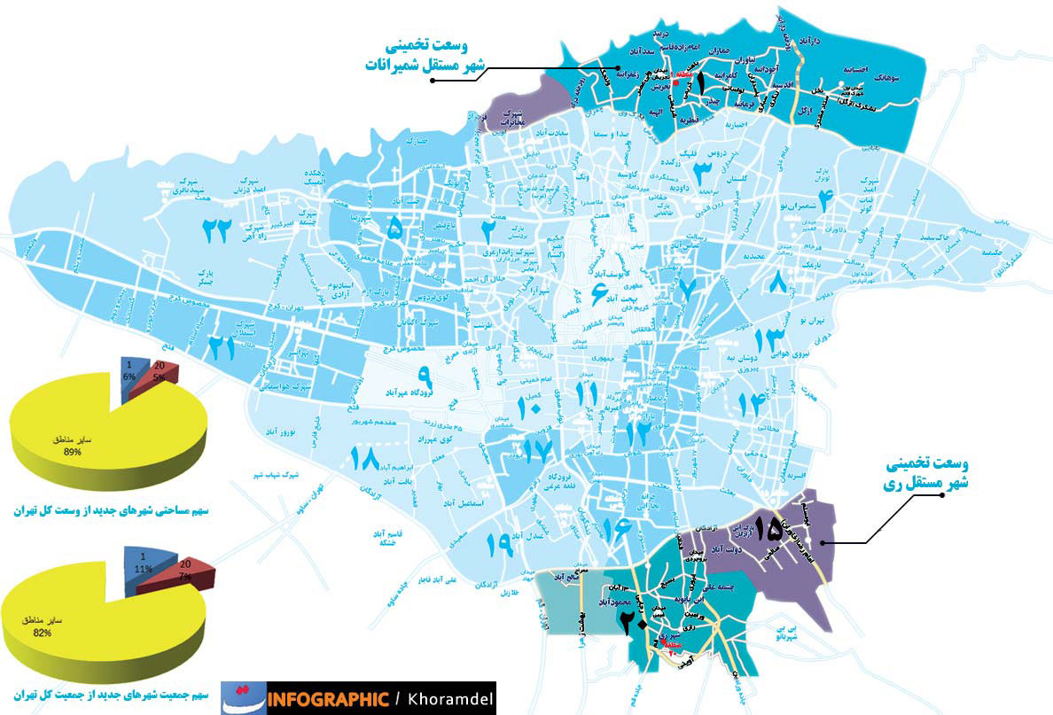 اما در این باره باید گفت، منطقه یک تهران، نزدیک ۴۴۵ هزار نفر را در خود جای داده که اگر مناطق افزوده شده از منطقه دو را نیز در نظر گرفته شود و چنین منطقه‌ای جزو شهر مستقل شمیرانات باشد، شاید نزدیک پانصد هزار نفر جمعیت شهر تازه را تشکیل دهند و در مقابل شهر ری و مناطقی که احتمال می‌رود جزو محدوده شهر مستقل رأی تلقی شوند، علاوه بر منطقه بیست و جمعیت ۳۷۸ هزار نفری‌اش با بخش‌هایی از مناطق ۱۵ و ۱۹ را می‌تواند شامل شود که شاید نزدیک چهارصد هزار تن را در بر بگیرد و این نهصد هزار در کل جمعیت تهران هشت میلیون و سیصدهزاری پایتخت، عدد چشمگیری است.