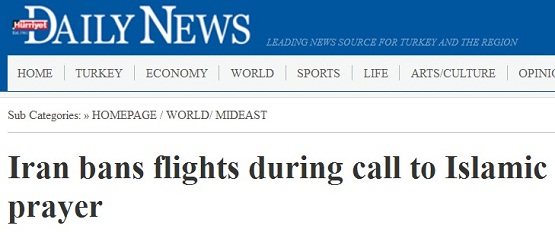 در پایان، خبر ممنوع شدن پرواز هواپیما‌ها در ایران در هنگام اذان، از جمله اخباری است که توجه بسیاری از مطبوعات جهانی را به خود جلب کرده است؛ از این جمله، می‌توان به «حریت» ترکیه اشاره کرده که می‌نویسد، مجلس ایران پرواز هواپیما‌ها در زمان اذان، به ویژه اذان صبح را ممنوع کرده است.