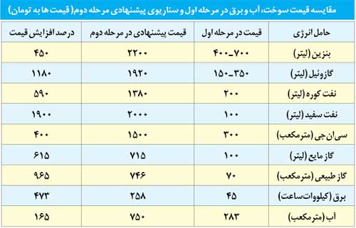 جام جم و چند روزنامه دیگر نیز، جدول زیر را به عنوان یکی از سناریوهای مورد نظر دولت منتشر کرده‌اند.