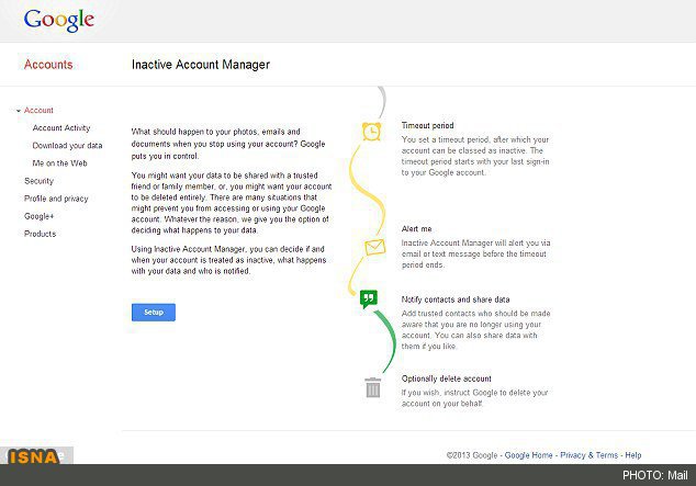 به گزارش ایسنا، این موتور جستجوی غول‌آسا صفحه‌ای موسوم به "اکانت غیرفعال" (Inactive Account) را منتشر کرده که به کاربران گوگل اجازه می‌دهد تعیین کنند که می‌خواهند پس از مرگشان YouTube ،Gmail و Google+ آن‌ها چگونه باشد.