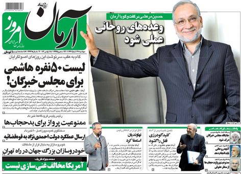 آرمان، نزدیکترین روزنامه به هاشمی رفسنجانی امروز به برخی اظهارات در مورد برنامههای وی برای مجلس خبرگان واکنش نشان داد.آرمان تلاشهای بخشهایی از اصولگرایان را مورد توجه قرار داده و نوشته است: از جمله این تلاشها اظهارات یک عضو جبهه پایداری است که از لیست ۵۰ نفره هاشمی برای مجلس خبرگان بعدی خبر داد. جواد کریمی قدوسی با اشاره به نفوذ و نقش خانواده آقای هاشمی در انتصاب افراد گفت: در همین مدت، حدود ۳۰ تا ۴۰ مورد تذکر در مورد نفوذ خانواده آقای هاشمی و نقش آنها در مورد انتصابات دادم. وی افزود: این جریان با همدستی آقای خاتمی به دنبال فتح مجلس شورای اسلامی آینده و خبرگان رهبری است و لیست ۵۰ نفرهای را برای در اختیار گرفتن خبرگان رهبری تهیه کرده که با دانش و بصیرت مردم و توانایی نظام این اتفاق نمیافتد. همچنین سایتهای اصولگرا اخیرا نوشتند که سیدمحمد خاتمی در جمع برخی اعضای مجمع روحانیون گفته است: «ما باید خود را برای انتخابات خبرگان آماده کنیم. من انتخابات خبرگان را مهمتر از انتخابات مجلس میدانم. باید ترکیب خبرگان را عوض کنیم. با مجمع محققین قم صحبت کردهایم که از میان روحانیون جوان و خوشفکر نیروهایی را شناسایی و برای حضور در خبرگان آماده سازیم». آگاهان به امر با یک نگاه گذرا به این جملات پی به جعلی بودن آن خواهند برد چرا که خاتمی در طی دوران ریاست جمهور و پس از آن بارها نسبت به جایگاه روحانیون به ویژه اعضای مجلس خبرگان عرض ارادت کرده است. لذا آنچه این سایتها نوشتهاند بیش از همه به یک شوخی شباهت دارد.